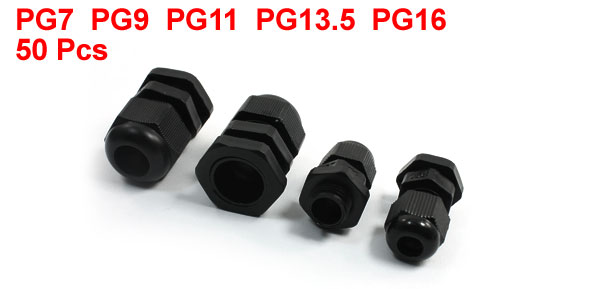 50PCS PG7 PG9 PG11 PG13.5 PG16 Black Plastic Waterproof Cable Glands
