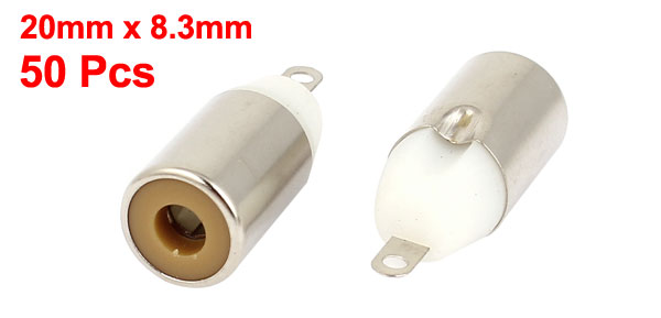 Main Color Brown, Yellow, Silver Tone, White Net Weight 54g Total Length 20mm/ 0.8" Country of Manufacture CHINA Package Content 50pcs(+/-2%) x RCA Female Connectors Diameter(Approx) 8.3 x 3.3mm/ 0.33" x 0.13"(Outer D*Inner D) Material Metal, Plastic - Reviews
