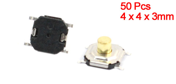 50pcs SMT Momentary Action 4 Pins Terminals Tactile Switches 4 x4x 3mm