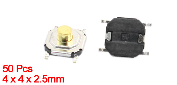50pcs SMT Momentary Action 4 Pins Terminals Tactile Switches 4x4x2.5mm