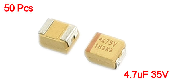 Product Name Chip Tantalum Capacitor Rated Voltage 35V Capacity 4.7uF Type 3528 B Model Each Size(Approx.) 4 x 3 x 2mm/ 0.16" x 0.12" x 0.08"(L*W*T) External Material Tantalum, Metal Weight 4g Package Content 50 Pcs(±2%) x 3528 Chip Tantalum Capacitor - Reviews