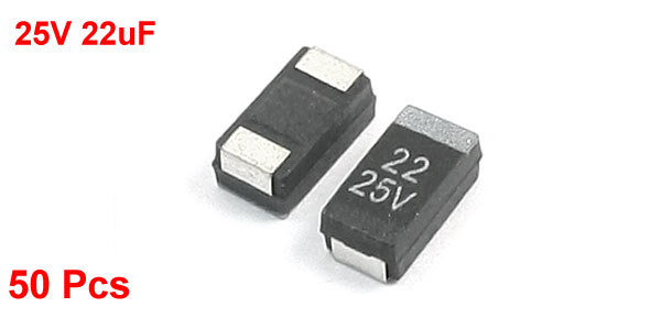 Product Name Chip Tantalum Capacitor Rated Voltage 25V Capacity 22uF Type 6032 C Type Each Size(Approx.) 6 x 3.2 x 2.6mm/ 0.24" x 0.13" x 0.1"(L*W*T) External Material Tantalum, Metal Weight 6g Package Content 50 Pcs(±2%) x Chip Tantalum Capacitor - Reviews