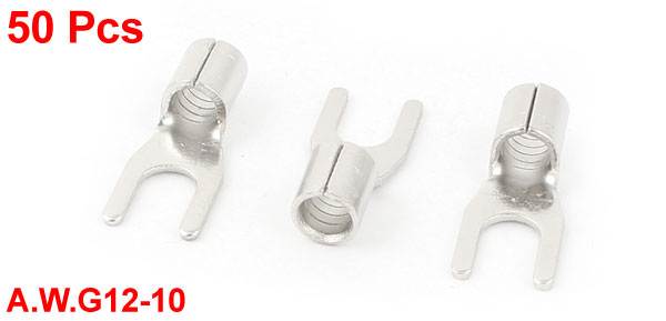 Product Name Non-insulated Terminals Type SNB5.5-4 Design Fork Type Material Metal Color Silver Tone Total Length 17mm / 0.7" Fit Cable Size 4-6mm²(A.W.G12-10) Weight 37g Package Content 50(+/-2%) x Non-insulated Terminals - Reviews