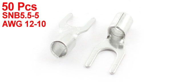 50pcs SNB5.5-5 Fork Type Non-Insulated Spade Cable Terminals for AWG 12-10