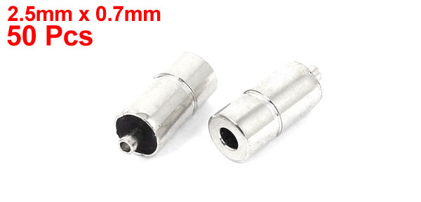 Details50pcs Soldering 2.5mmx0.7mm DC Power Female Plug Jack Socket Adapter Connector  Main Color Silver Tone, Black Net Weight 55g Country of Manufacture CHINA Package Content 50pcs(+/-2%) x DC Power Female Connector Type Female Material Metal, Plastic Total Size 14 x 6mm/ 0.55" x 0.24"(L*D) Diameter Spec 2.5 x 0.7mm(Hole*Pin)