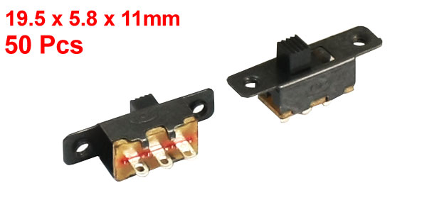 50pcs SPDT 2 Position 3 Terminals Panel Mount Horizontal Slide Switch