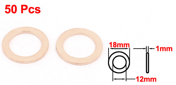 Product Name Copper Washer Inner Diameter 12mm/0.47" Outer Diameter 18mm/0.71" Thickness 1mm/0.04" Material Copper Color Copper Tone Weight 52g Package Content 50 Pcs(+/-2%) x Copper Washer - Reviews