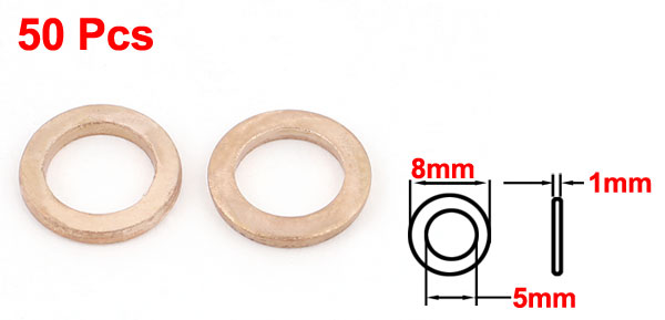 Product Name Copper Washer Inner Diameter 5mm/0.2" Outer Diameter 8mm/0.31" Thickness 1mm/0.04" Material Copper Color Copper Tone Weight 11g Package Content 50 Pcs(+/-2%) x Copper Washer  - Reviews
