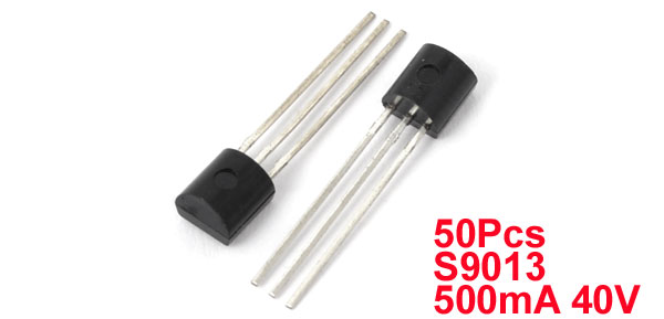 Product Name NPN Epitaxial Silicon Transistor Model S9013 Collector-base Voltage 40V Emitter-base Voltage 5V Collector Current (DC) 500mA Total Power Dissipation 625mW Storage Temperature -55 to 150 C Color Black, Silver Tone Weight 5g Package Content 50 x NPN Epitaxial Silicon Transistor - Reviews