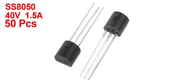 Product Name NPN Epitaxial Silicon Transistor Model SS8050 Collector-base Voltage 40V Emitter-base Voltage 5V Collector Current (DC) 1.5A Total Power Dissipation 1W Storage Temperature -65 to 150 C Color Black, Silver Tone Weight 6g Package Content 50 x NPN Epitaxial Silicon Transistor - Reviews