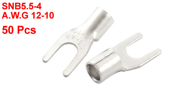 50PCS Uninsulated Furcate Fork Terminals Cable Lug AWG 12-10 SNB5.5-4