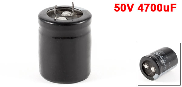 Product Name Electrolytic Capacitor Type Radial Lead Features Standard General Purpose Maximum Temperature 105°C Withstand Voltage 50V Capacitance 4700uF Body Size 25 x 31mm / 1" x 1.2'' (D*L) Terminal Spacing 9mm / 0.35'' Dielectric Material Aluminum Color Black Weight 20g Package Content 1 x Electrolytic Capacitors - Reviews