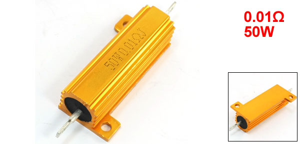 Product Name Aluminum Clad Resistor Resistance Value 0.01Ohm Power Rating 50W Resistance Tolerance ± 5% (J) Lead Inner Dia 2mm/0.08" Total Length 73mm/2.9" Body Size 5 x 2.1 x 1.5cm/1.9" x 0.83" x 0.59" (L*W*T) Mounting Hole Dia 3.5mm/0.14" External Material Aluminum Color Gold Tone Weight 25g Package Content 1 x Aluminum Clad Resistor - Reviews