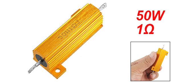 Product Name Aluminium Clad Resistor Power Rating 50W Resistance Value 1 Ohm Resistance Tolerance ± 5% Mounting Hole Dia. 0.3cm / 0.118" Mounting Hole Spacing 4cm / 1.6" Case Size (Exclude Tabs) 5 x 1.6 x 1.5cm / 2" x 0.62" x 0.59" (L*W*H) Overall Size (Approx.) 7.3 x 2.8cm / 2.9" x 1.1" (L*W) Case Material Aluminum Case Color Gold Tone Net Weight 26g Package Content 1 x Aluminium Clad Resistor - Reviews