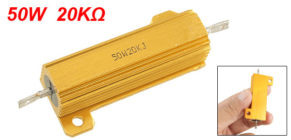 50W 20000 Ohm 5% Screw Tab Aluminium Clad Wirewound Resistor Gold Tone