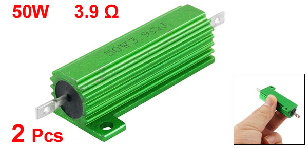 Product Name Aluminum Housed Resistor Resistance Value 3.9 Ω Power Rating 50W Resistance Tolerance ± 5% (J) Body Size 49 x 15mm/ 1.9" x 0.59" (L*D) Mounted Hole Size 1.8mm/ 0.07", 3mm/ 0.12" Total Size 70 x 21 x 15mm/ 2.75" x 0.83" x 0.59" (L*W*T) Casing Material Aluminum Color Green Weight 48g Package Content 2 x Aluminum Housed Resistor - Reviews