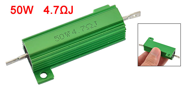 Product Name Aluminum Housed Resistor Resistance Value 4.7 Ohm Power Rating 50W Resistance Tolerance ± 5% (J) Body Size 49 x 15mm/ 1.9" x 0.6" (L*D) Mounted Hole Size 3.5mm/0.137" Total Size 72 x 22 x 15mm/ 2.8" x 0.9" x 0.6" (L*W*T) Casing Material Aluminum Color Green Weight 25g Package Content 1 x Aluminum Housed Resistor - Reviews