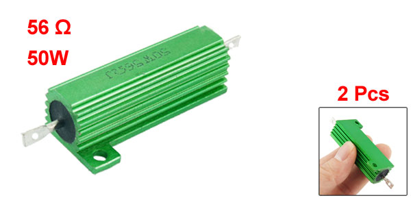 Product Name Aluminum Housed Resistor Resistance Value 56 Ω Power Rating 50W Resistance Tolerance ± 5% (J) Body Size 49 x 15mm/ 1.9" x 0.59" (L*D) Mounted Hole Size 1.8mm/ 0.07", 3mm/ 0.12" Total Size 70 x 21 x 15mm/ 2.75" x 0.83" x 0.59" (L*W*T) Casing Material Aluminum Color Green Weight 48g Package Content 2 x Aluminum Housed Resistor - Reviews