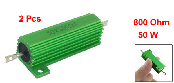Details50W 800 Ohm Screw Tap Mounted Aluminum Housed Wirewound Resistors 2 Pcs  Product Name Aluminum Housed Resistor Resistance Value 800 Ohm Power Rating 50W Resistance Tolerance ± 5% (J) Body Size 49 x 15mm/ 1.9" x 0.59" (L*D) Mounted Hole Size 1.8mm/ 0.07", 3mm/ 0.12" Total Size 70 x 21 x 15mm/ 2.75" x 0.83" x 0.59" (L*W*T) Casing Material Aluminum Color Green Weight 48g Package Content 2 x Aluminum Housed Resistor