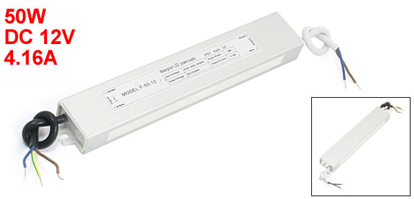 Product Name Waterproof LED Driver Fit for 50W LED Strip Input AC 90-260V 50/60HZ Output DC 12V 4.16A Protection Rank IP67 Overall Size(Approx.) 24 x 4 x 2.2cm/9.5" x 1.6" x 0.87" (L*W*T) Cable Length 15cm/5.9" Shell Material Aluminum Alloy, Plastic Main Color Silver Tone Net Weight 315g Package Content 1 x Waterproof LED Driver - Reviews