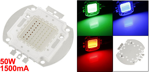 Product Name RGB LED Chip Voltage Red: 18-20V, Green:24-26V, Blue: 24-26V Luminous Flux Red: 400-500LM, Green: 600-800LM, Blue: 200-300 Wave Length Red: 620-625nm, Green: 515-520nm, Blue: 455-460nm Power 50W Current 1500mA Integrated Mode 8 in Series and 6 in Parallel Light Color (RGB)Red, Green, Blue Material Aluminum Color Silver Tone Size 56 x 40mm/ 2.2" x 1.6"(L*W) Weight 28g Package Content 1 x RGB LED Chip - Reviews