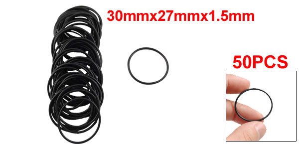 Details50x NBR 30mm x 1.5mm Hole Sealing O Rings Gaskets Washers for Mechanical  Product Name O Ring Material Nitrile Rubber(NBR) Quantity 50 ± 2% Pcs Outside Diameter 30mm / 1.18" Inner Diameter 27mm / 1.06" Thickness 1.5mm / 0.059" Color Black Weight 13g Package Content 50 x NBR O Ring