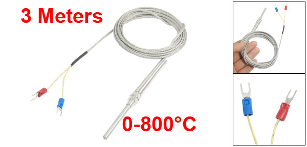 Product Name Thermocouple Transfer Type E Temperature Range 0-800C Thread Diameter 8mm / 3.1" Probe Diameter 5mm/ 0.1" Fork Terminal Spacing 4mm / 0.16" Probe Length 50mm/ 2" External Shielding Metal Shield Total Length 3 meters / 9.8Ft Color Silver Tone Weight 55g Package Content 1 x Thermocouple - Reviews