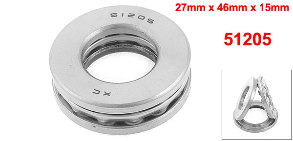Product Name Thrust Ball Bearing Type 51205 Direction Single Material Carbon Steel Inner Diameter 27mm / 1.1" Outer Diameter 46mm / 1.8" Thickness 15mm / 0.59" Main Color Silver Tone Weight 103g Package Content 1 x Thrust Ball Bearing - Reviews