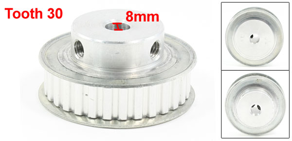 Product Name Timing Pulley Type XL30 Number of Tooth 30 Pitch 1.5mm/ 1/16'' Overall Size 51 x 25mm/2'' x 1''(D*H) Bore Diameter 8mm/ 5/16" Fit Belt Width 10mm/0.4'' Material Aluminum Color Silver Tone Weight 100g Package Content 1 x Timing Pulley - Reviews