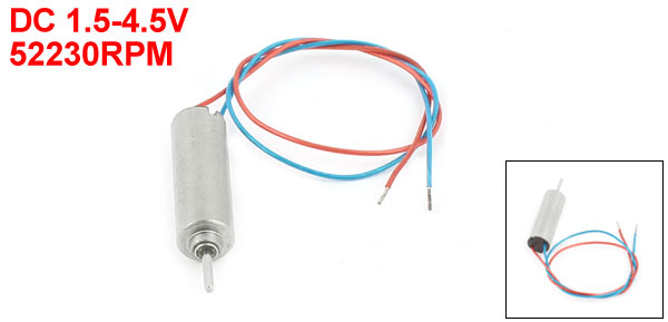 Main Color Silver Tone Brand DMiotech Country of Manufacture CHINA Total Length 17mm/0.67" Model 412 Material Metal Shaft Size 0.7 x 4mm(D*L) Wire Length 8cm/3.1" Net Weight 2g Speed 52230RPM Package Content 1 x DC Coreless Motor Voltage DC 1.5-4.5V Body Size 4 x 12mm/0.16" x 0.47"(D*L) - Reviews