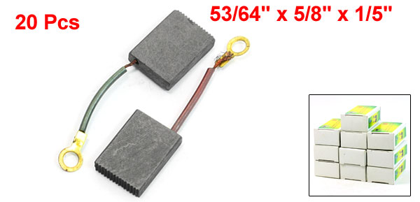 Product Name Carbon Brush Carbon Brush Size (Approx) 21 x 16 x 5mm / 53/64" x 5/8" x 1/5"(L*W*T) Wire Length 30mm / 1.2" Material Carbon, Copper, Metal Main Color Dark Gray Net Weight 112g Package Content 20 Pcs x Carbon Brush - Reviews
