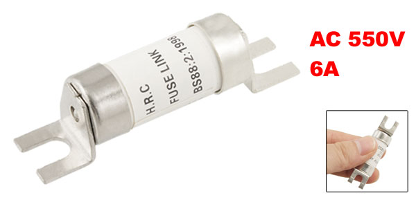 Product Name Fuse Link Model No. HRC NIT Type Fast Blow Rated Voltage AC 550V / DC 250V Rated Current 6A Breaking Capacity AC 80KA / DC 40KA Installing Hole Size 8 x 5mm/0.31" x 0.2"(L*W) Total Size 54 x 13.3mm/2.13" x 0.52"(L*W*T) Material Ceramic, Metal Main Color White Net Weight 16g Package Content 1 x Fuse Link - Reviews