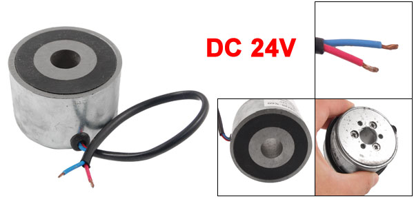 Product Name DC Electromagnet Type Sucked Type Material Metal, Electronic Parts Color Silver Tone, Black Rated Voltage DC 24V Force 55kg Outer Diameter 60mm/ 2.36"