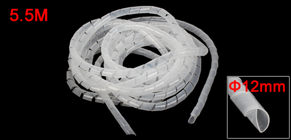 5.5M Long Flexible White PE Polyethylene Spiral Cable Wire Wrap Tube 12mm