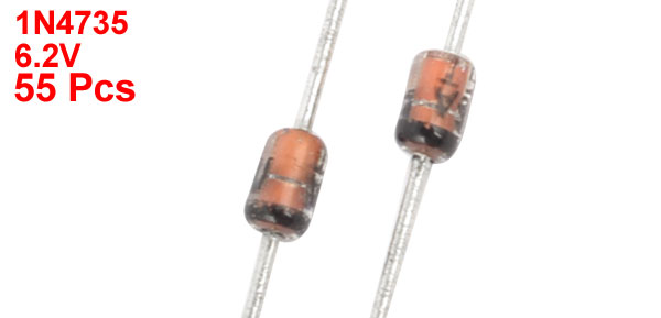 55Pcs 1N4735 6.2V 1W Glass Sealed Case Axial Leads Zener Diodes