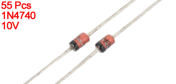 55Pcs 1N4740 10V 1W Glass Sealed Case Axial Leads Zener Diodes