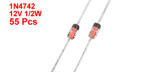 55Pcs 1N4742 12V 1/2W Glass Sealed Case Axial Leads Zener Diodes