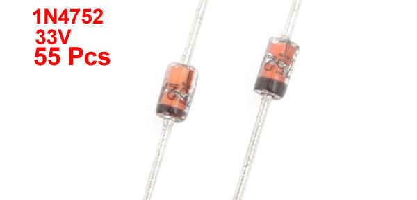55Pcs 1N4752 33V 1W Glass Sealed Case Axial Leads Zener Diodes