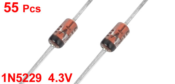 55Pcs 1N5229 4.3V 1/2W Glass Sealed Case Axial Leads Zener Diodes