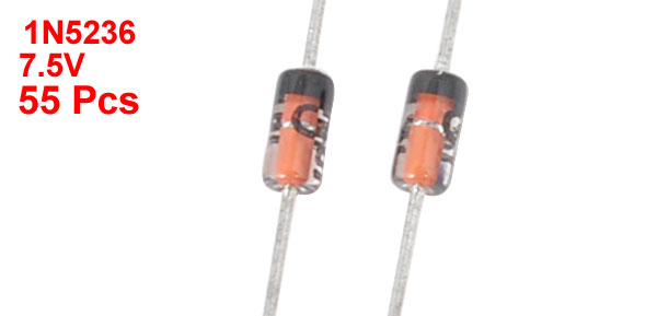 55Pcs 1N5236 7.5V 1/2W Glass Sealed Case Axial Leads Zener Diodes