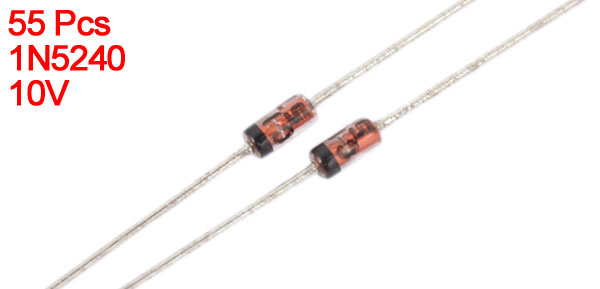 55Pcs 1N5240 10V 1/2W Glass Sealed Case Axial Leads Zener Diodes