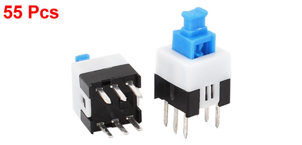 55Pcs 6 Pin Square 7mmx7mm Latching DPDT Mini Push Button Switch