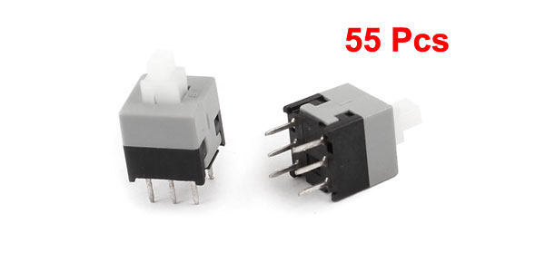 Details55pcs 6 Pins DPDT Momentary Power Micro Push Button Switches 8.5x.8.5mm  Product Name Push Button Switch Contact Type Momentary Dimension(Not Included Pin) 8.5 x 8.5 x 13.5mm/ 0.33" x 0.33" x 0.53"(L*W*H) Pin Pitch 5 x 2mm / 0.2" x 0.08" (L*W) Pin Length 3.5mm / 0.14" Material Plastic, Metal, Electric Parts Color Gray, Black, Silver Tone Weight 34g Package Content 55(±2%)Pcs x Push Button Switches