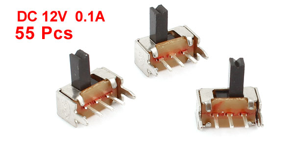 Product Name Slide Switch Model SK12D07-VG5 Contact Type SPDT Terminals Quantity 3 Working Power DC 12V, 0.1A Material(External) Plastic, Metal Main Color Black, Silver Tone Weight 26g Package Content 55 x Slide Switches - Reviews