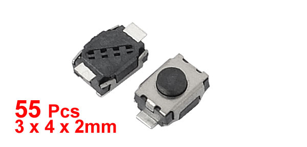 55Pcs Momentary Tact Tactile Push Button Switch 3x4x2mm 2-pin SMD