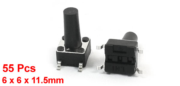 55Pcs Momentary Tact Tactile Push Button Switch 6x6x11.5mm 4-pin SMD