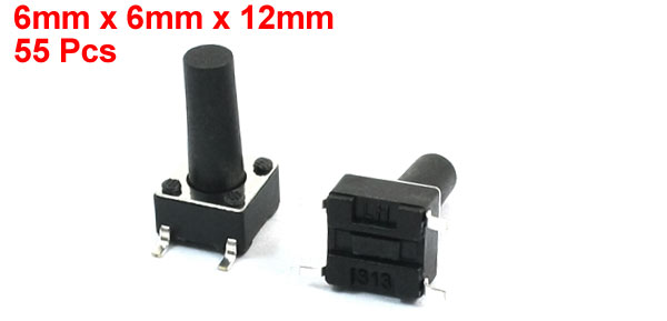 55Pcs Momentary Tact Tactile Push Button Switch 6x6x12mm 4-pin SMD