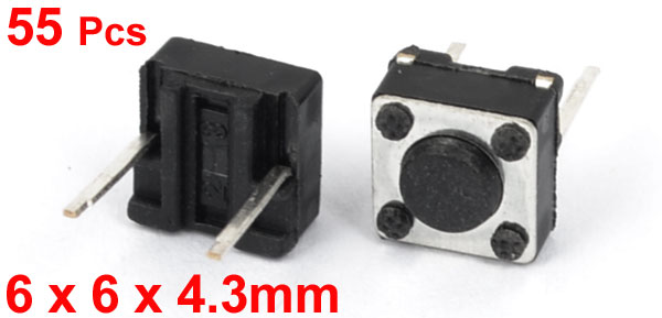 55Pcs Momentary Tact Tactile Push Button Switch 6x6x4.3mm 2-pin DIP