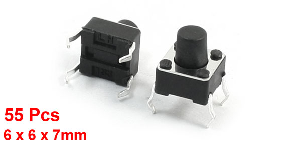55Pcs Momentary Tact Tactile Push Button Switch 6x6x7mm 4-pin DIP