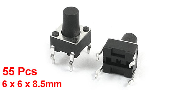55Pcs Momentary Tact Tactile Push Button Switch 6x6x8.5mm 4-pin DIP